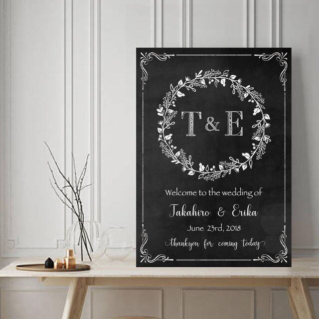黒板風 イニシャル 印刷ウェルカムボード アンティーク