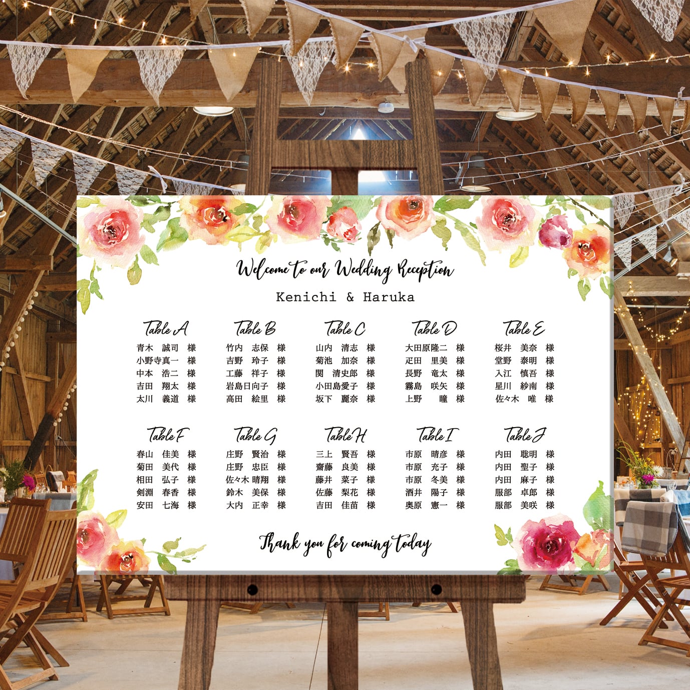 席次表〜水彩Rose〜 結婚式 ウェルカムボード 印刷