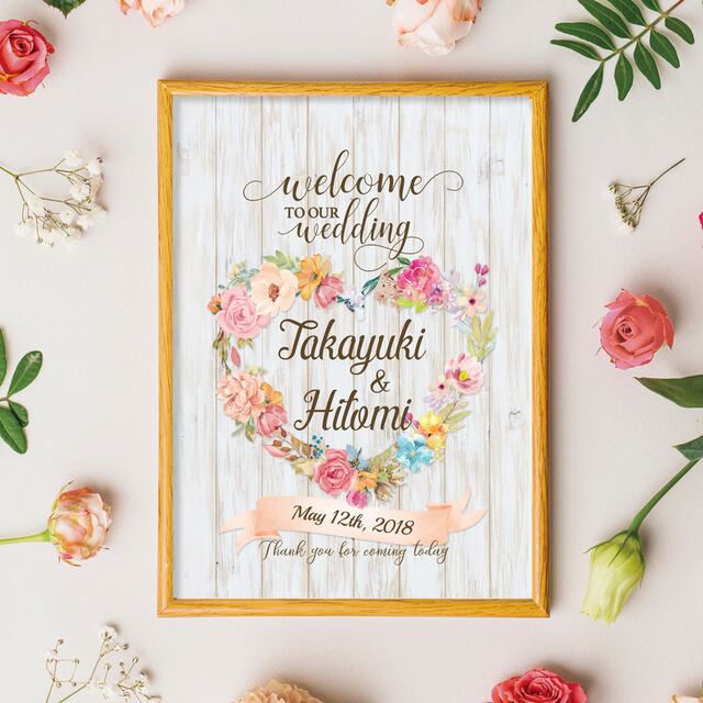 Floral♡heart ウッド調 ウェルカムボード