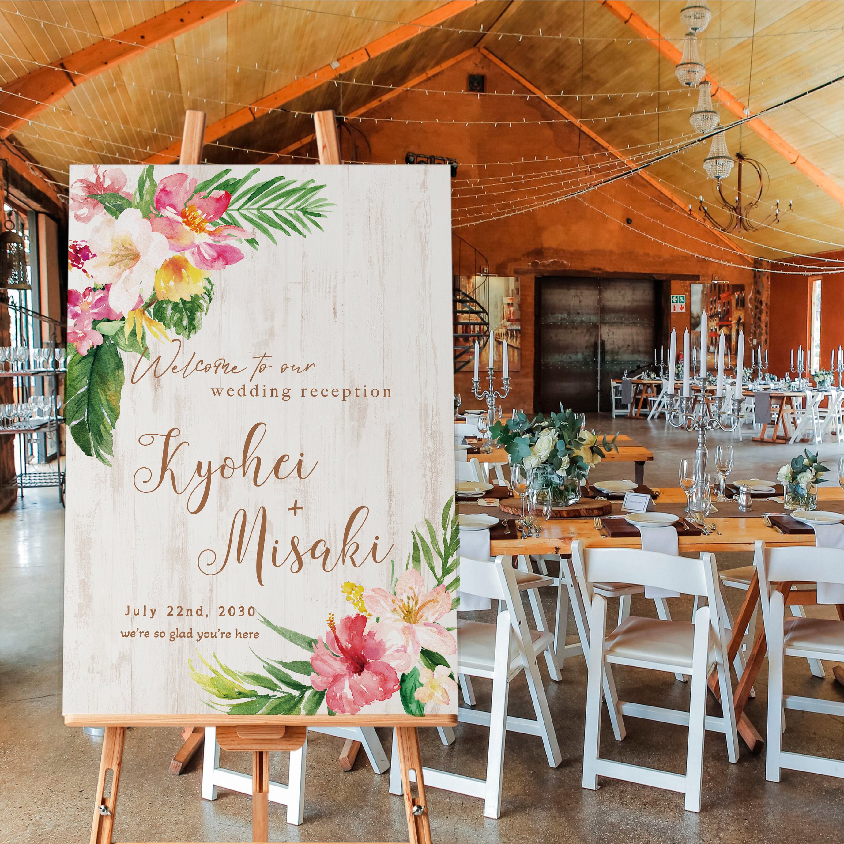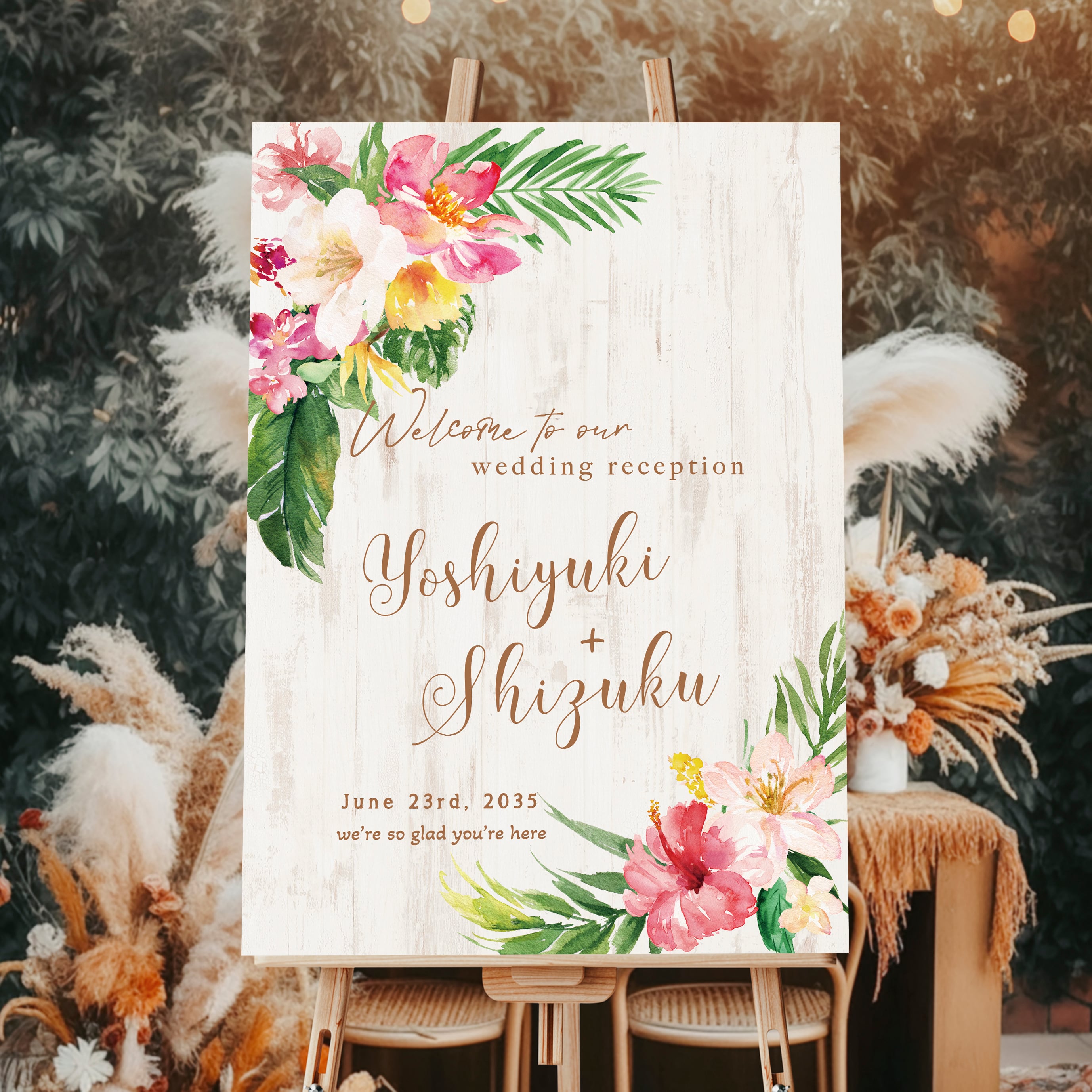 ハワイ 南国 テーマにぴったりのウッド調 ウェルカムボード 2ビーチ 夏