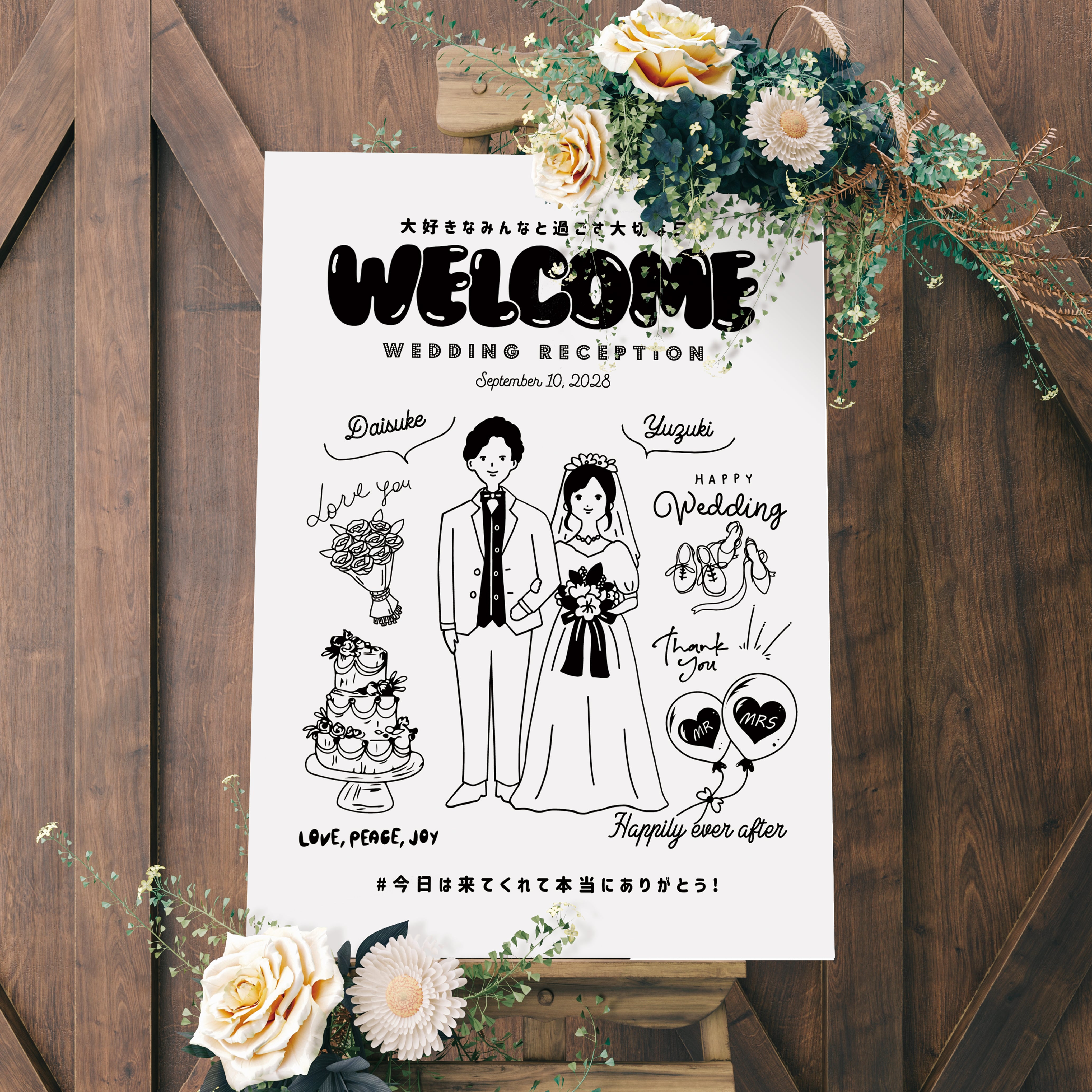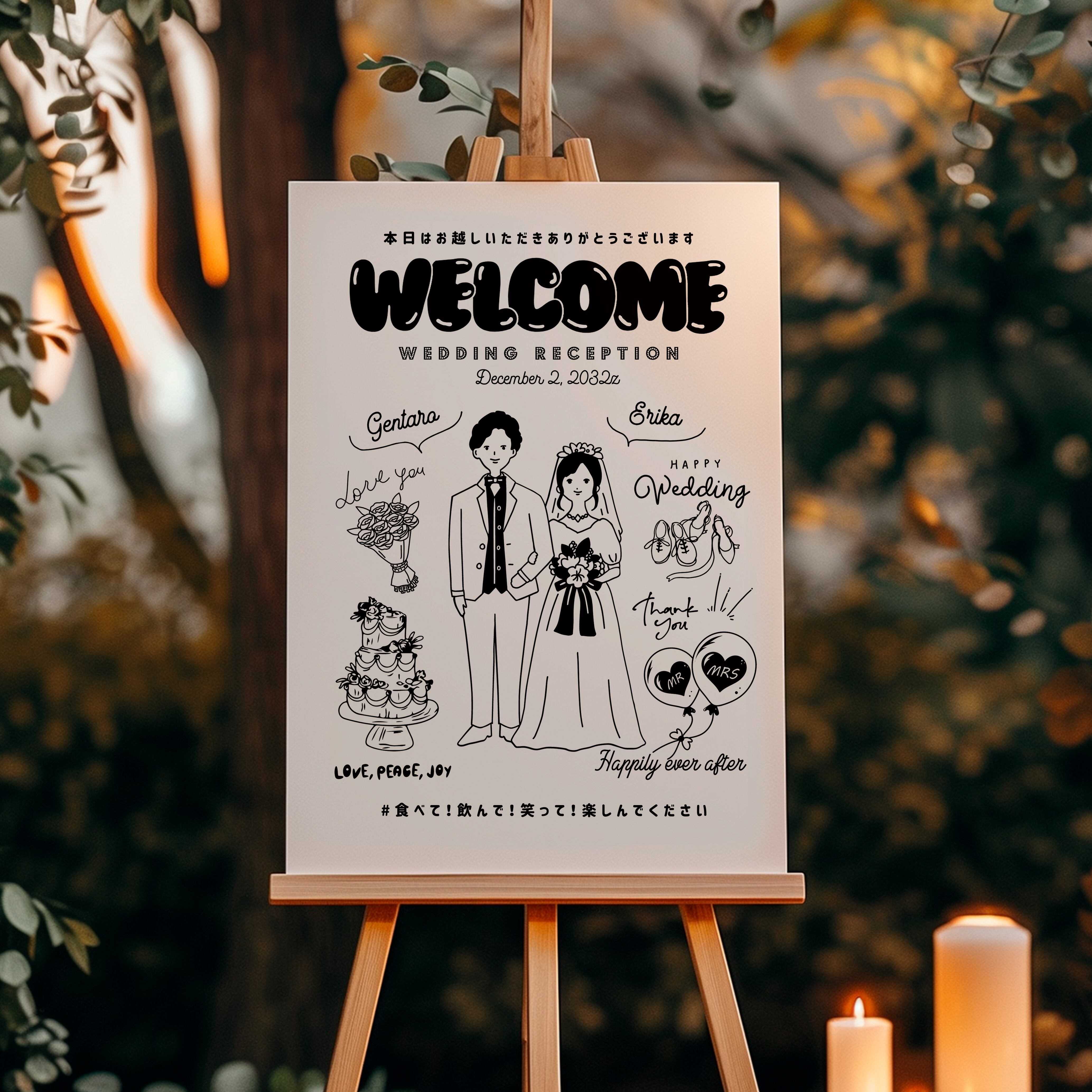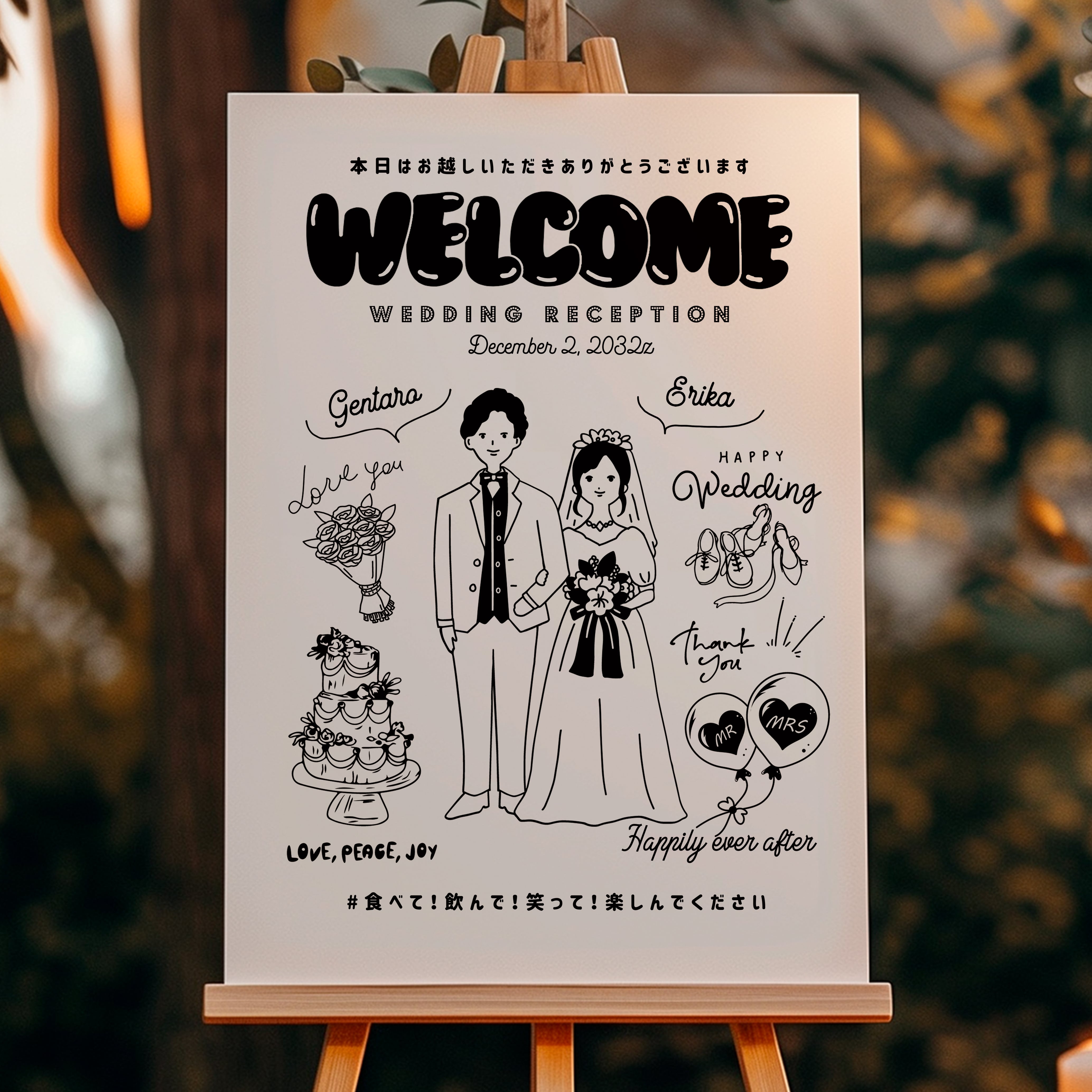 トレンド〖 ポパイ風 〗ウェルカムボード  雑誌 / POPEYE風 イラスト 秋のウェデイング 手書き